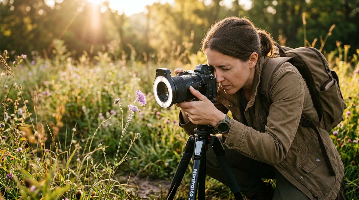 We researched dedicated macro lenses from 60mm to 180mm, evaluated extension tubes and close-up filters as budget alternatives, and analyzed hundreds of Amazon reviews from photographers shooting insects, flowers, jewelry, and product catalogs. This guide covers the optical physics that make macro difficult — paper-thin depth of field, diffraction limits, and the lighting challenges of working centimeters from your subject — and the practical techniques that solve each problem.